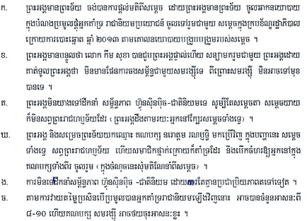 B- The prince said that Mr. Kem Sokha met him in person and promised to unite with the prince, he told the prince that he has no plan to form an alliance with Sam Rainsy because Sam Rainsy cannot move forward.